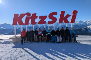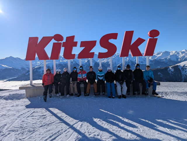Die Kursfahrt des LK Sport 11 begann am Sonntag, den 2.1.2026 früh morgens um 6:45 Uhr an den Bushaltestellen an der Mensa im dunklen Nebel. Aber dieses etwas triste Grau sollte sich bald ändern, denn schon in Bayern konnten wir den ersten Schnee erkennen und bei unser Ankunft in Piesendorf begrüßte uns die beeindruckende Bergkulisse der hohen Tauern. Am nächsten Tag sollte es dann in kleinen Gruppen aufgeteilt losgehen: Die Anfänger erkundeten zuerst den Übungshang vor Ort, wohingegen die Fortgeschrittenen und Könner sich auf den 300 Pistenkilometer der „Kitzski“ Arena austoben durften. Mit viel Geduld der betreuenden Lehrer und gegenseitiger Unterstützung schafften dann schon am zweiten Tag alle Kursteilnehmer/innen den Wechsel nach Kitzbühel und konnten dort die ersten sicheren Schwünge fahren. Bei perfekten Bedingungen genossen wir „das Schifoan“ wobei die Pausen auf der Hütte mit warmem Kakao und guter Stimmung genauso dazu gehörten, wie das Üben von Kurzschwüngen oder Kanteneinsätzen. Am Ende jedes Tages traf sich dann der ganze Sport LK zu Theorieeinheiten (denn etwas „Schule“ musste es dann doch halt sein) in denen FIS-Regeln, ökologischer Verträglichkeit des Skifahrens und Grundaspekte der Technik in kreativen Impulsen vermittelt wurden. Leider wird es in drei Tagen wieder nach Hause gehen und der schulische Alltag der Schüler/innen des LK Sport 11 wird wieder von Unterrichtsstunden im ELG geprägt sein, aber die Skifahrt nach Piesendorf wird noch lange als besondere Zeit im Schnee in Erinnerung bleiben, denn …. ….. „Schifoan is des leiwaundste wos ma si nur vurstelln kann!“