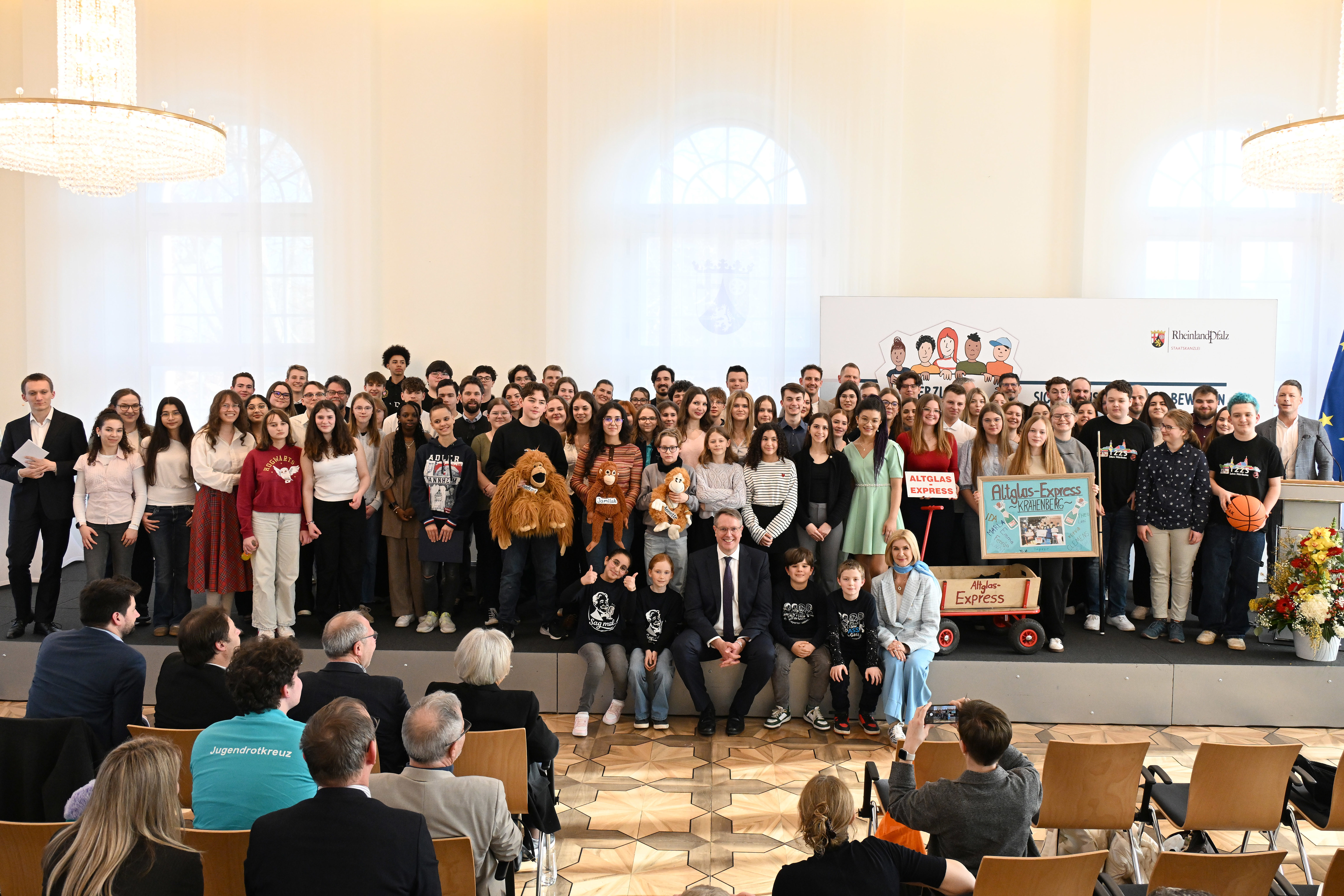 Unter zahlreichen Bewerbungen wurden 30 Projekte ausgewählt, die eine finanzielle Förderung erhalten. „Ich bin sehr beeindruckt vom Ideenreichtum der Projekte. Sie zeigen, wie Engagement im Ehrenamt bei wichtigen und aktuellen Themen wie Vielfalt, Toleranz und Respekt, (…) in der Schule gelingen kann“, lobte der Ministerpräsident die Preisträgerinnen und Preisträger. (Quelle: https://www.rlp.de/service/pressemitteilungen/detail/ministerpraesident-alexander-schweitzer-junge-menschen-mischen-sich-ein-und-machen-ihre-ideen-sichtbar-davon-lebt-unsere-demokratie; Zugriff: 28.02.2026)